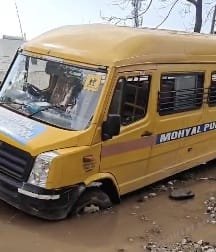 पलटने से बची स्कूली बच्चों से भरी मिनी बस, सप्तऋषि क्षेत्र में डाली जा रही सीवर लाइन के गड्ढे में भरा था पानी